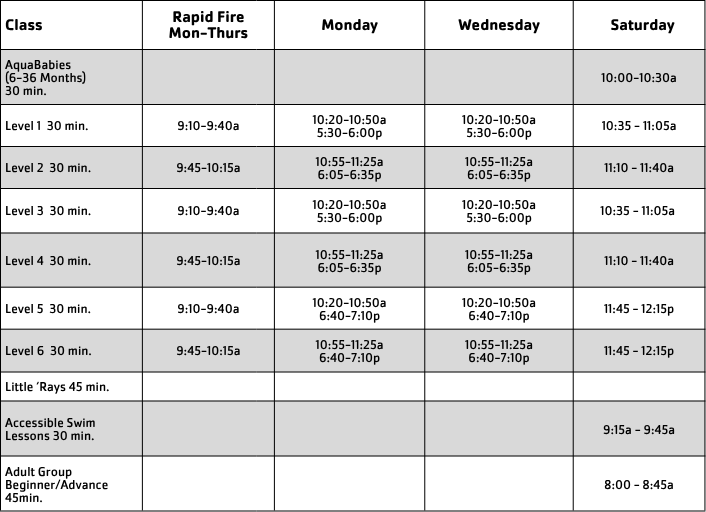 All private/semi-private swim lessons are comprised of 30-minute, one-on-one classes with the participant and a YMCA swim lesson instructor. Private and semi-private swim lessons are RESERVED ONLY FOR MEMBERS of the Lakota Family YMCA.